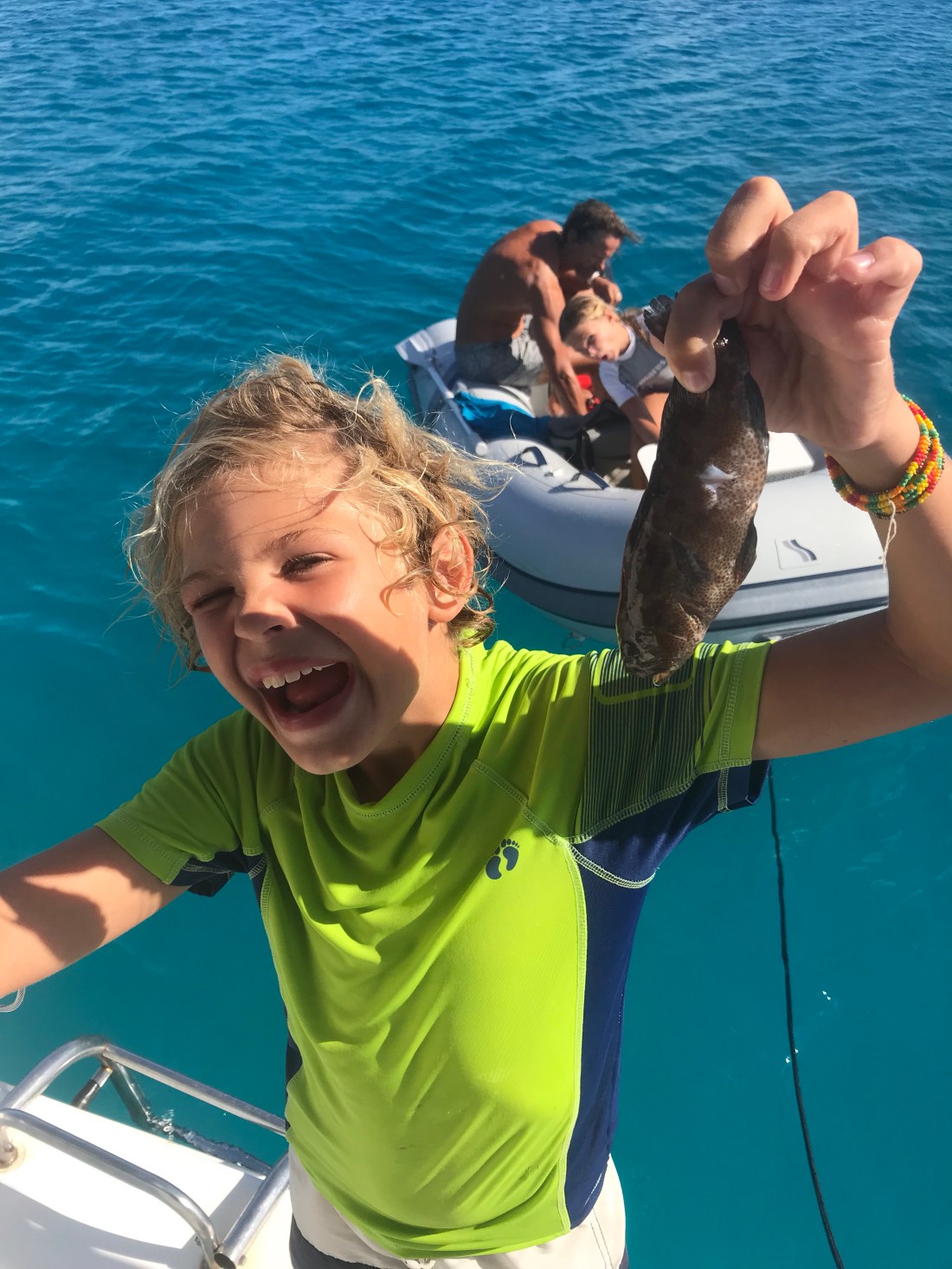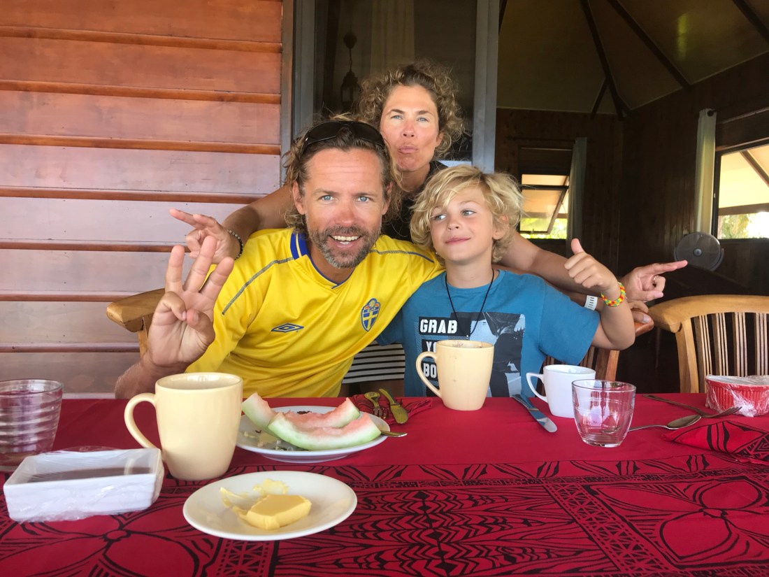 Hei igjen!Nå har vi kommet frem til Tahiti, og her er nettet så bra at vi kan laste opp bilder. Det blir en blanding av nytt og gammelt, for det er en stund siden vi har hatt skikkelig nettilgang.Klemmer fra Albert og EbbaRaroia var et paradis. Her hadde vi en hel korallatoll nesten for oss selv.Det var mye spennende å se når vi snorklet på Raroia. Over ser dere en Manta Ray med nesten 4 meter vingespenn. Haien over tok en Squirrel Fish som vi hadde lagt ut til den. På det meste hadde vi over 20 haier svømmende rundt oss når vi jaktet Papegøyefisk og Grouper med harpun.Håndballtrening på Raroia. Varme tanker til våre kjære medspillere på Tjølling (Ebba) og Halsen (Albert)Vi feiret 10 årsdagen til Albert 12 juni etter lokale tradisjoner.Stille morgen på Raroia.En herlig gjeng i regnvær på Raroia.Padletur om morgenen. Bak ser dere øya der Kon Tiki strandet i 1947.Vi utforsker strendene på Raroia.Deilige dager på Kauehi.Fint å lese bok oppe i seilbagen.Albert har skutt sin første fisk med harpun.Vi fant et sted der vi kunne se Sverige – Tyskland.På denne flotte stranden på Makemo hadde vi aktivitetsdag med slåball og kanonball. I friminuttene badet vi.På bar sammen med våre store forbilder (Ann Kristin og Atle) som seiler på Jovial. De har en egen Facebook side på jovialsailing.