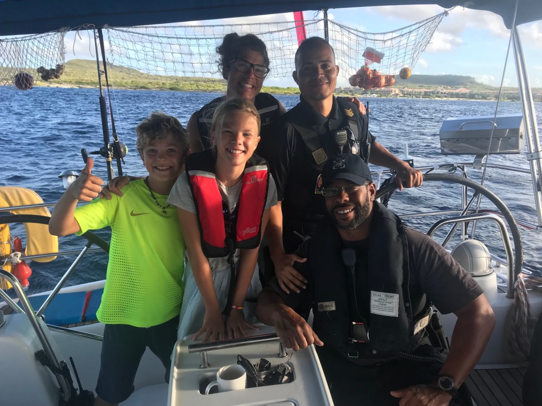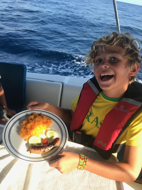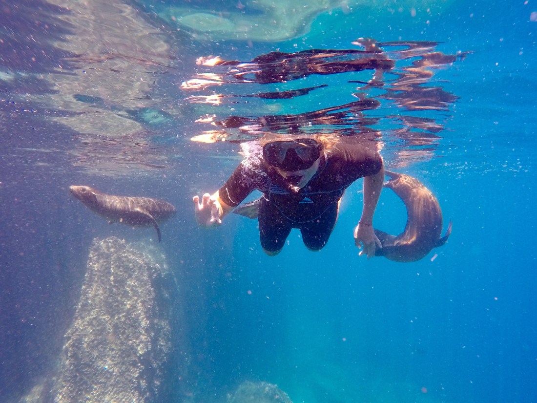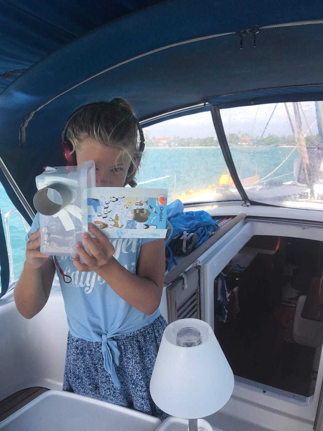 En kveld dro pappa for å si hadet til noen norske voksne vi møtte. En av dem var fadderen til pappa når han jobbet i pwc. Det var veldig koselig å være sammen med dem en kveld. Vi var i båten i mens pappa og TK var inne i havna for å si hadet. Da plutselig hører jeg noen som puster skikkelig høyt også tenkte jeg: «ah, det er sikkert ikke noe». Men så hører jeg det en gang til, og mye høyere. Da kikker jeg ut det lille vinduet, og der står det en stor, feit, mørk skygge. Den ser på meg, og da ser jeg det, det er en sjøløve som har kommet helt opp i cockpiten. Dam, dam, daaaaaaam!