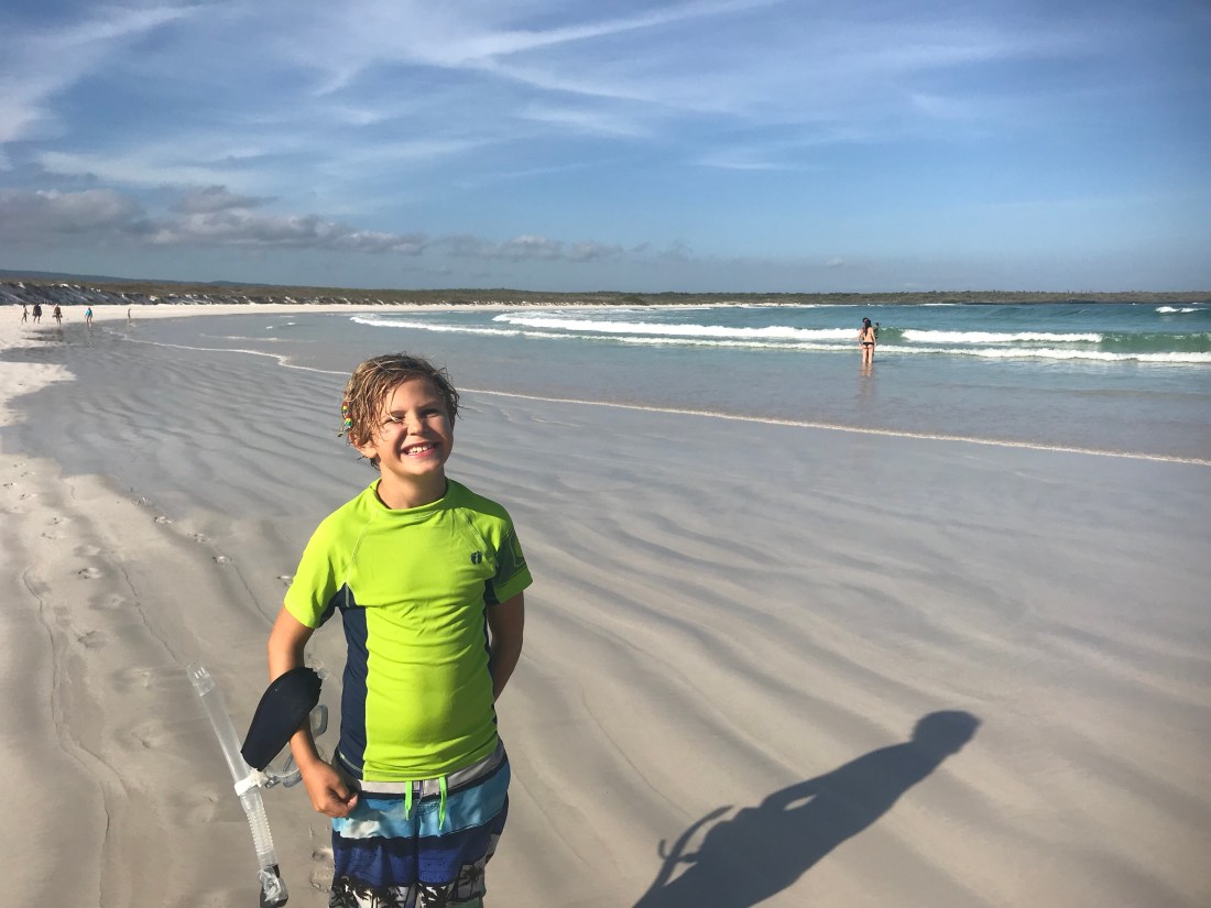 Vi jogget til stranden alle sammen, det var faktisk ganske slitsomt, men jeg ga ikke opp. Det er lenge siden jeg har løpt, og selv om det er veldig varmt var det veldig koselig. Det er godt å kjenne at det river litt i hjertet. Det er veldig fin natur på Galapagos. Jeg kan høre finker som kvitrer, jeg kan se masse fine blader og store kaktuser, jeg kan føle gleden av å leve. Jeg fikk brukt det nye svettebåndet mitt som jeg kjøpte i Panama da.
